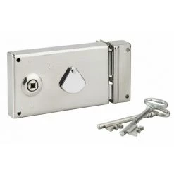 THIRARD – Serrure De Grille En Applique Horizontale à Clé à Fouillot Pour Portail, Gauche, Axe 58mm, 140x82mm, Inox, 2 Clés