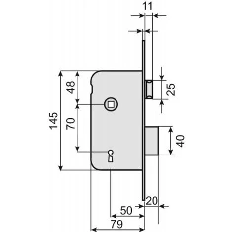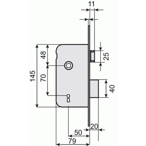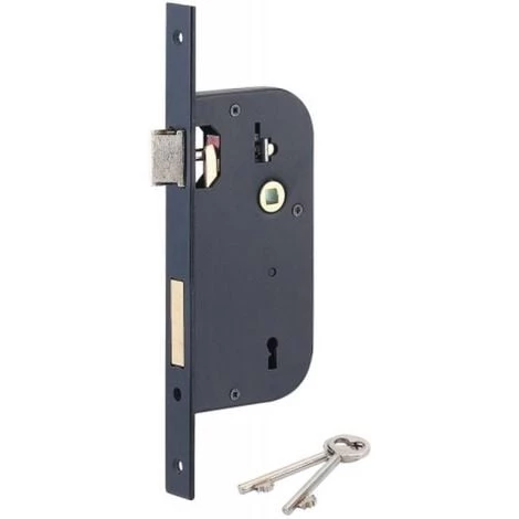 Serrures de sĂ»retĂ© Ă larder Ă gorgesSerrure de sĂ»retĂ© Ă larder – 4 gorges axe 50 mm – type 203 RĂ©versible sans dĂ©montage du coffre. MĂ©canisme Ă 4 gorges 2 tours de clĂ©. Coffre en acier embouti noir epoxy : 145 x 79 mm. TĂŞtière bouts carrĂ©s en acier : 230 x 20 mm. Axe : 50 mm