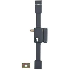 BoĂ®tier en acier embouti Ă©p. 20/10ème, tringle standard permettant une condamnation de porte de 1,65 m Ă 2,25 m. MĂ©canisme intĂ©rieur type Ă©querre permettant la manoeuvre du 1/2 tour avec la clĂ©, de l’intĂ©rieur comme de l’extĂ©rieur. PĂŞne dormant et 1/2 tour en laiton massif. PĂŞne haut et bas en acier ø 16 mm sur tringles tĂ©lescopiques en acier permettant un ajustement très prĂ©cis Ă la longueur dĂ©sirĂ©e et ne nĂ©cessitant aucune recoupe. Cache tringle, guides et gâches de pĂŞnes haut et bas en acier ne laissant apparaĂ®tre aucune vis de fixation. Finition : peinture Ă©poxy coloris marron foncĂ©.