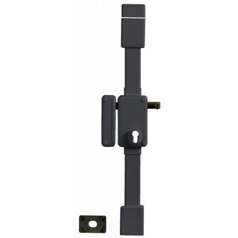 BoĂ®tier en acier embouti Ă©p. 20/10ème, tringle standard permettant une condamnation de porte de 1,65 m Ă 2,25 m. MĂ©canisme intĂ©rieur type Ă©querre permettant la manoeuvre du 1/2 tour avec la clĂ©, de l’intĂ©rieur comme de l’extĂ©rieur. PĂŞne dormant et 1/2 tour en laiton massif. PĂŞne haut et bas en acier ø 16 mm sur tringles tĂ©lescopiques en acier permettant un ajustement très prĂ©cis Ă la longueur dĂ©sirĂ©e et ne nĂ©cessitant aucune recoupe. Cache tringle, guides et gâches de pĂŞnes haut et bas en acier ne laissant apparaĂ®tre aucune vis de fixation. Finition : peinture Ă©poxy coloris marron foncĂ©.