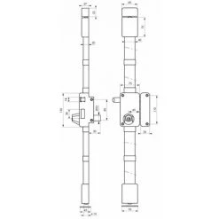 Boîtier en acier embouti ép. 20/10ème. Coffre de 75x130mm, axe à 45 mm. Tringles standard permettant une condamnation de porte de 1,65 m à 2,25 m. Mécanisme intérieur type équerre permettant la manœuvre du 1/2 tour avec la clé, de l’intérieur comme de l’extérieur. Pêne dormant et 1/2 tour en laiton massif. Pênes haut et bas en acier ø 16 mm sur tringles plates en acier permettant un ajustement très précis à la longueur désirée et ne nécessitant aucune recoupe. Gâche équerre de haute résistance. Cache-tringles, guides et gâches de pênes haut et bas en acier ne laissant apparaître aucune vis de fixation. Carré 7mm – Poignée double fournie pour serrure à fouillot. Le montage de la serrure ne nécessite pas d’entaillage spécifique de la porte.