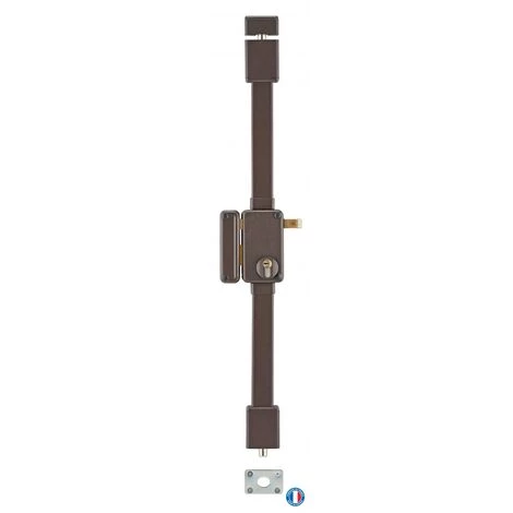 BoĂ®tier en acier embouti Ă©p. 20/10ème. Coffre de 75x130mm, axe Ă 45 mm. Tringles standard permettant une condamnation de porte de 1,65 m Ă 2,25 m. MĂ©canisme intĂ©rieur type Ă©querre permettant la manĹ“uvre du 1/2 tour avec la clĂ©, de l’intĂ©rieur comme de l’extĂ©rieur. PĂŞne dormant et 1/2 tour en laiton massif. PĂŞnes haut et bas en acier ø 16 mm sur tringles plates en acier permettant un ajustement très prĂ©cis Ă la longueur dĂ©sirĂ©e et ne nĂ©cessitant aucune recoupe. Gâche Ă©querre de haute rĂ©sistance. Cache-tringles, guides et gâches de pĂŞnes haut et bas en acier ne laissant apparaĂ®tre aucune vis de fixation. CarrĂ© 7mm – PoignĂ©e double fournie pour serrure Ă fouillot. Le montage de la serrure ne nĂ©cessite pas d’entaillage spĂ©cifique de la porte.