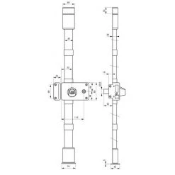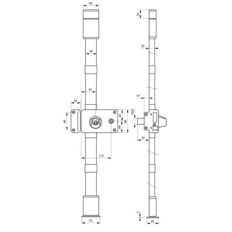 Boîtier en acier embouti ép. 20/10ème. Coffre de 140 x 88 mm. Tringles standard permettant une condamnation de porte de 1,65 m à 2,25 m. Mécanisme intérieur type équerre permettant la manœuvre du 1/2 tour avec la clé, de l’intérieur comme de l’extérieur. Pêne dormant et 1/2 tour en laiton massif. Pêne haut et bas en acier Ø 16 mm sur tringles plates en acier permettant un ajustement très précis à la longueur désirée et ne nécessitant aucune recoupe. Gâche avec têtière de haute résistance. Cache-tringles, guides et gâches de pênes haut et bas en acier ne laissant apparaître aucune vis de fixation. Enjoliveur de cylindre côté intérieur. Carré 6 mm. Le montage des serrures ne nécessite pas d’entaillage spécifique de la porte.