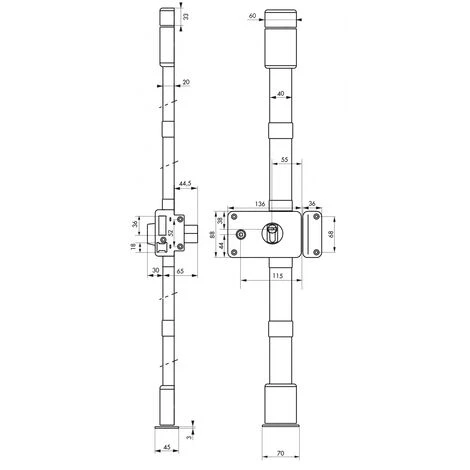 La serrure Horga A2P* s’adapte Ă une hauteur de porte allant de 1,65 Ă 2,25m, sans recoupe nĂ©cessaire. L’installation est facilitĂ©e grâce aux pĂŞnes situĂ©s en haut et en bas de la structure. Sur une tringle plate en acier et de diamètre de 16 mm, les pĂŞnes permettent un ajustement très prĂ©cis Ă la longueur dĂ©sirĂ©e. De plus, la pose de la serrure Horga A2P* ne requiert pas un entaillage spĂ©cifique de la porte.