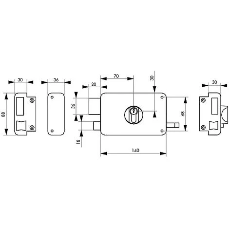 Serrures Ă cylindre europĂ©en OptimumSerrure en applique horizontale Ă tirage – PĂŞne dormant et demi-tour – A cylindre europĂ©en – Optimum Coffre de 140 x 88 mm.