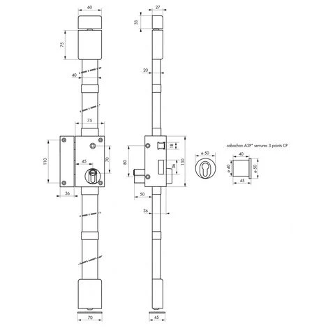 - Serrure vendue avec jeu de tringle, poignée et cylindre