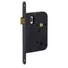 Couverture acier avec ceinture PVC. Gâche plate acier. Pêne bronze d’aluminium. Condamnation et décondamnation intérieure par bouton. Arrêt de portillon incorporé. Accessoires : poignée extérieure PVC, équerre pour gâche plate.