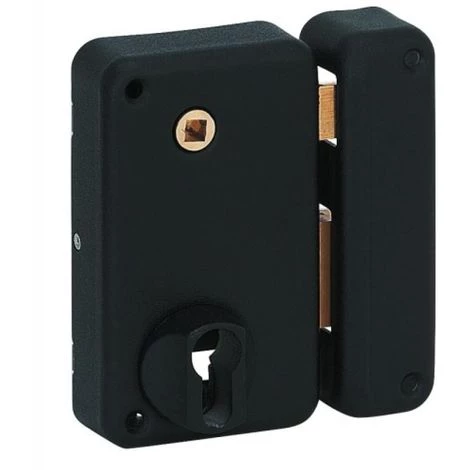 Serrures Ă cylindre europĂ©en OptimumSerrure en applique verticale Ă fouillot – PĂŞne dormant et demi-tour – A cylindre europĂ©en – Optimum Coffre de 75 x 130 mm.