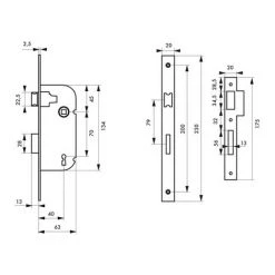Coffre acier embouti. TĂŞtière acier. Demi-tour alliage rĂ©versible sans dĂ©montage du coffre. PĂŞne acier. Gâche plate acier. MĂ©canisme Ă 1 tour. CarrĂ© 7mm, entr’axe 70 mm. 1 clĂ©. 6 variures
