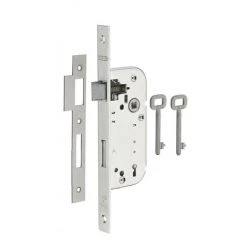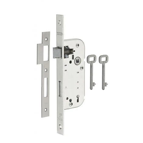 Coffre acier embouti. TĂŞtière acier. Demi-tour alliage rĂ©versible sans dĂ©montage du coffre. PĂŞne alliage. Gâche plate acier. MĂ©canisme Ă 3 gorges, 2 tours. CarrĂ© 7mm, entr’axe 70 mm. 2 clĂ©s. 48 variures.
