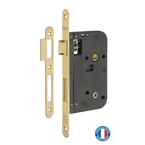 Coffre acier embouti. Têtière laiton. 1/2 tour laiton réversible sans démontage du coffre. Pêne laiton. Carré 7mm. Gâche plate selon finition.- Dimension : 88.5x145mm