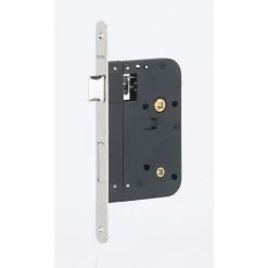 Coffre acier embouti. Têtière laiton. 1/2 tour laiton réversible sans démontage du coffre. Pêne laiton Carré 7mm. Gâche plate selon finition.- Dimension : 98.5x145mm