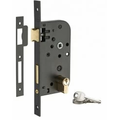 Coffre acier embouti. TĂŞtière acier. Demi-tour alliage zinguĂ©. rĂ©versible sans dĂ©montage du coffre. PĂŞne alliage zinguĂ©. Gâche plate acier. MĂ©canisme Ă 2 tours. Rappel du 1/2 tour par la clĂ©. CarrĂ© 7mm, entr’axe 70 mm. Cylindre profilĂ© laiton 30 x 30 mm. 3 clĂ©s en acier nickelĂ©.- Dimension : 79x145mm
