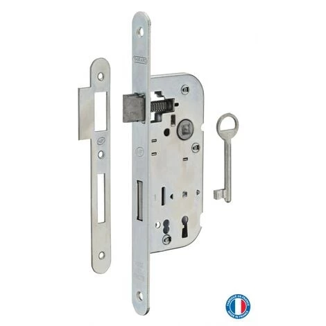 Coffre acier embouti. TĂŞtière acier. Demi-tour alliage rĂ©versible sans dĂ©montage du coffre. PĂŞne acier. Gâche plate acier. MĂ©canisme Ă 1 tour. CarrĂ© 7mm, entr’axe 70 mm. 1 clĂ© – 6 variures.RĂ©sistante, durable et sĂ©curisĂ©e, cette serrure Ă pĂŞne dormant Ă encaster en acier est conçue pour Ă©quiper les portes intĂ©rieures. Elle est fournie avec sa gâche plate en acier et une clĂ©. CertifiĂ©e NF et dotĂ©e d’un demi-tour rĂ©versible sans dĂ©montage et d’un mĂ©canisme Ă un tour, cette serrure Thriard s’installe facilement et offre un verrouillage efficace de votre porte pour garantir votre intimitĂ©. Cette serrure de porte Ă condamnation est disponible en diffĂ©rentes versions : Ă tĂŞtière Ă bouts carrĂ©s ou arrondis, en finition noir granitĂ© ou zinguĂ©e.- Dimension : 59x135mm