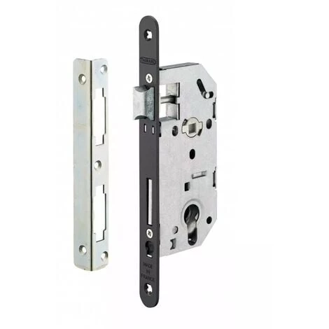 Coffre acier embouti. TĂŞtère acier bouts ronds. Demi-tour bipente alliage. PĂŞne acier galvanisĂ©. gâche acier zinguĂ©. MĂ©canisme Ă 2 tours. Rappel du 1/2 tour par la clĂ©. CarrĂ© 7 mm, entr’axe 70 mm.