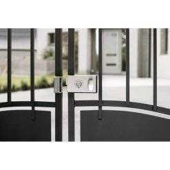 Coffre et gâche acier cambrĂ©. PĂŞne et demi-tour acier. Canon acier longueur 35 mm. EntrĂ©e de clĂ© laiton sur coffre. MĂ©canisme Ă 2 tours. PĂŞne 1/2 tour rĂ©versible pour porte ouvrant Ă l’extĂ©rieur. CarrĂ© 6 mm – 2 clĂ©s nickelĂ©es – 6 variures. EntrĂ©e de clĂ© et de fouillot acier.Conçue pour verrouiller efficacement votre grille ou portail, cette serrure Ă appliquer Ă pĂŞne dormant en acier est fournie avec deux clĂ©s en acier nickelĂ©. Cette serrure de suretĂ© Thirard s’installe facilement et offre un verrouillage efficace de votre portillon. Cette serrure en applique horizontale est disponible en diffĂ©rentes versions : pour une pose Ă droite ou Ă gauche, basic ou avec pĂŞne en saillie.- Dimension : 140x82mm