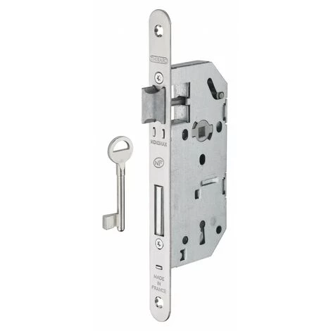Efficace pour verrouiller les portes intĂ©rieures, cette serrure encastrable Ă clĂ© rĂ©pond aux exigences de la norme NF de niveau 2. RĂ©versible sans dĂ©montage, elle se compose d’un coffre Ă l’axe Ă 40mm et d’un pĂŞne en acier ainsi que d’une tĂŞtière Ă bouts ronds. Elle offre un verrouillage optimal grâce Ă un mĂ©canisme Ă deux tours contrĂ´lĂ© par la clĂ© founie.La serrure Ă clĂ© Monomax est garantie 10 ans et fournie avec sa gâche plate. FabriquĂ© par dĂ©faut avec un carrĂ© de 7mm, ce modèle peut ĂŞtre rĂ©alisĂ© avec un carrĂ© de poignĂ©e de 8mm sur demande. La Monomax est disponible en finition acier, inox ou epoxy noir.