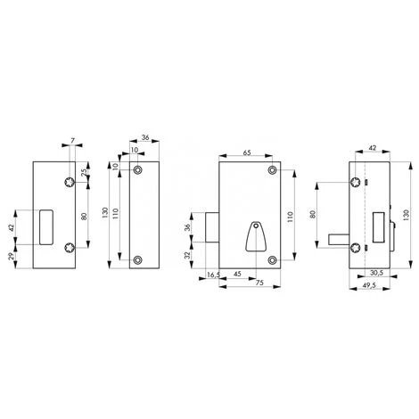 Coffre et gâche acier cambré. Pêne soudé acier zingué. Canon en alliage long. 45 mm, mécanisme 6 gorges à 2 tours. 2 clés nickelées. 20 variures. Entrée de clé acier zinguée.- Dimension : 75x130mm