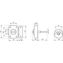 Verrous automatiques à voyantVerrou à bouton automatique type Alouette pour WC avec voyant finition argent Coffre et gâche en alliage moulé.Fabrication Française