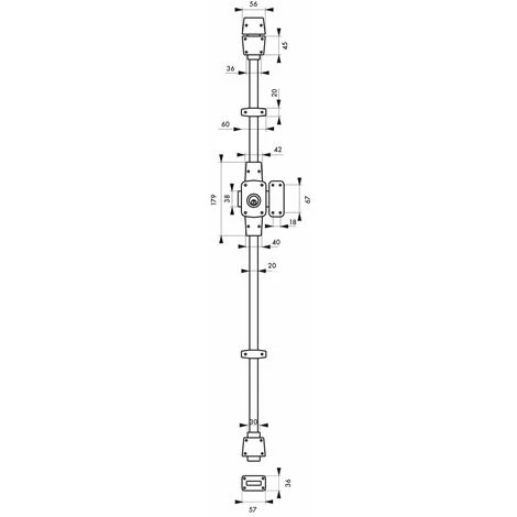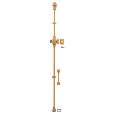Coffre acier embouti. Gâche acier embouti. PĂŞnes acier zinguĂ©. Cylindre laiton Ă 5 goupilles 45 mm. Tringles en acier 1×500 + 1×1500 mm. Plaque de renfort. Coulisseau de passage pour serrure horizontale. 3 clĂ©s en acier nickelĂ©.