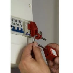 Nylon armĂ©. S’adapte aux disjoncteurs munis d’interrupteur Ă bascule. Verrouillage par cadenas.