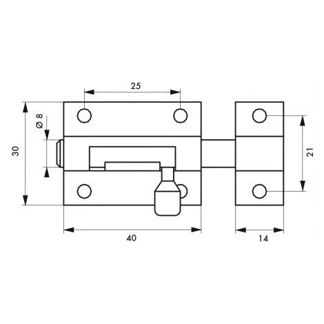 Corps laiton étiré. Gâche laiton étiré. Bouton laiton décolleté. Pêne rond coulissant.
